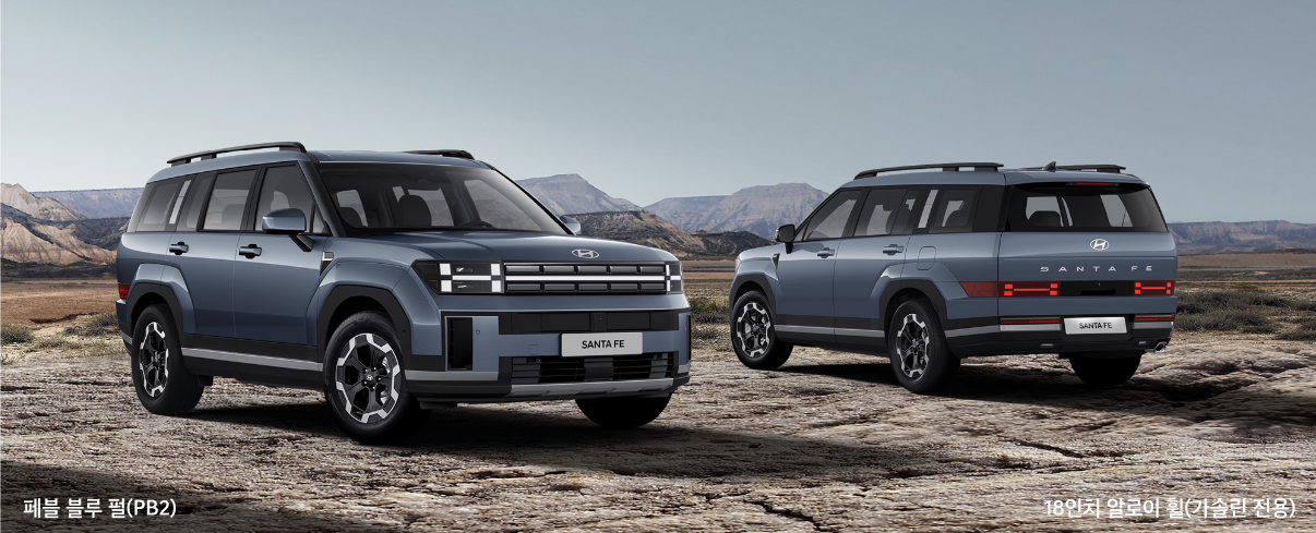 가장 큰 특징으로는 아무래도 외관의 변화가 아닐까 하는데요, 견고한 디자인에 미래지향적인 디테일을 더해 싼타페만의 압도적인 존재감을 보여주는 특징이 있습니다.